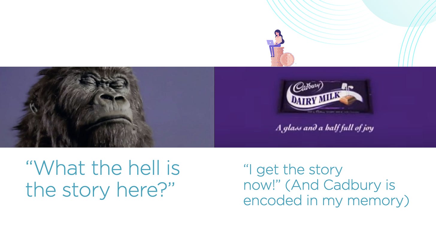 Over the past decade, Neuro-Insight has analyzed over 25,000 ads, and Cadbury “Gorilla" ranks in the top 1 percent for long-term memory encoding. And there’s a key lesson here for anyone who wants to tell a story that'll make people remember their company or their “personal brand.”