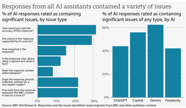 Representation of BBC News content in AI Assistants (BBC): A super-nerdy —and very important — study by the BBC on how AI search tools like ChatGPT and perplexity make significant mistakes when reporting the news most of the time. AI’s hallucination issues remain way underestimated.