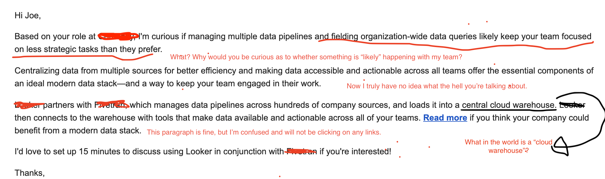 That might seem like a ridiculous, made-up example, but it's from a real email I received from a well-known tech company!