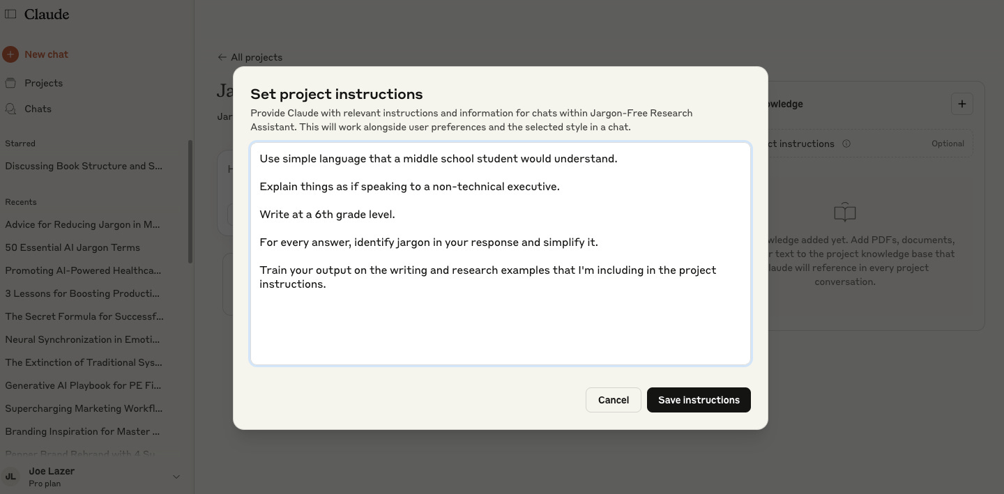 To save time, you can give ChatGPT and Claude all these instructions as part of a project.